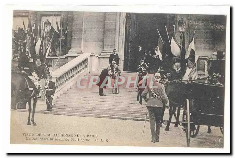 Visite de S M Aphonse XIII a Paris Cartes postales Le Roi serre la main de M Lepine