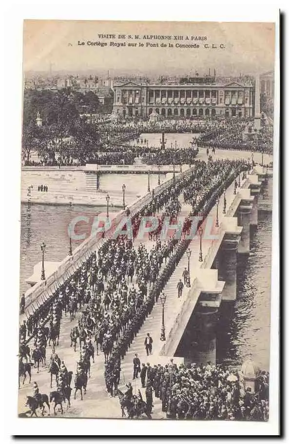 Visite de S M Aphonse XIII a Paris Cartes postales Le cortege royal sur le pont de la Concorde