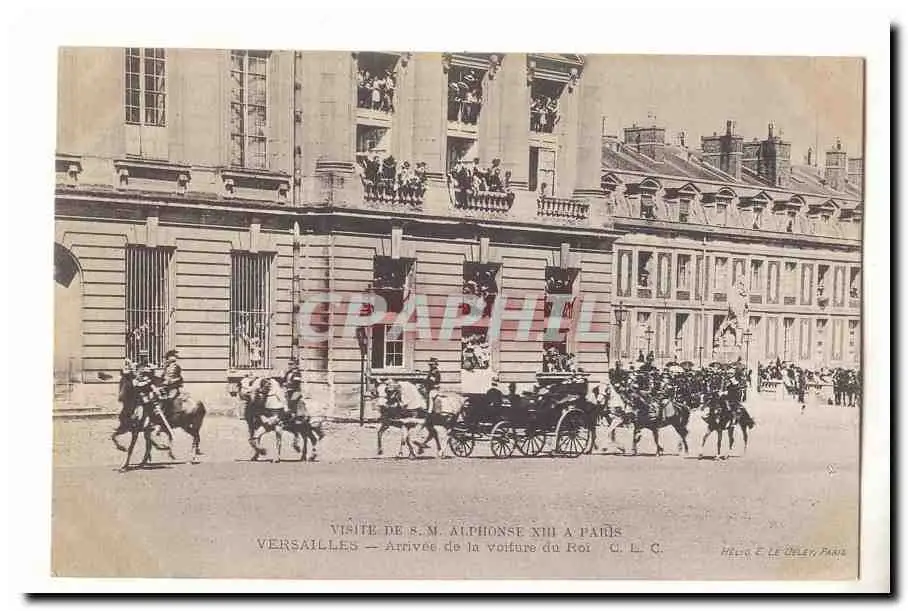Visite de S M Aphonse XIII a Paris Cartes postales Versailles Arrivee de la voiture du roi