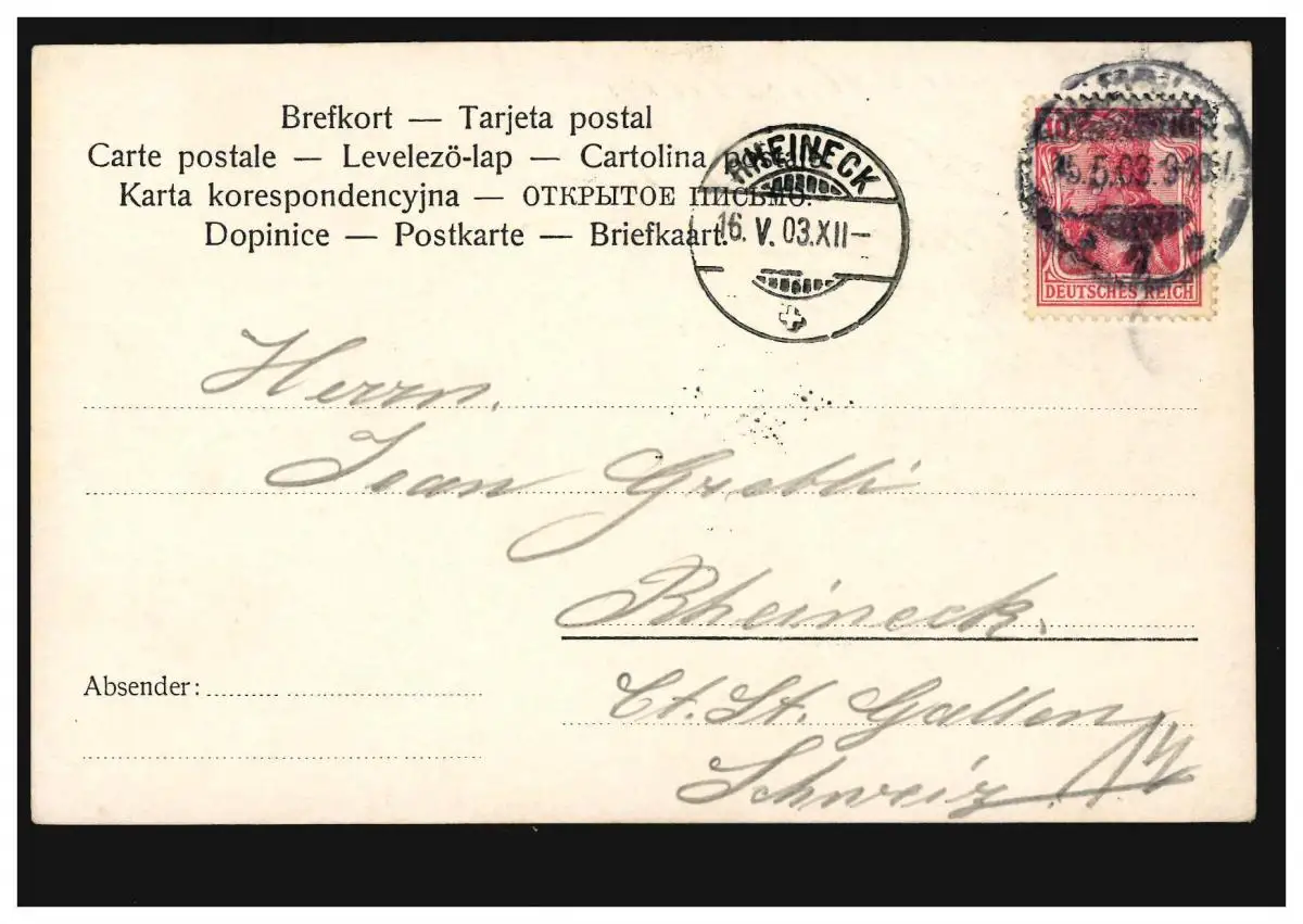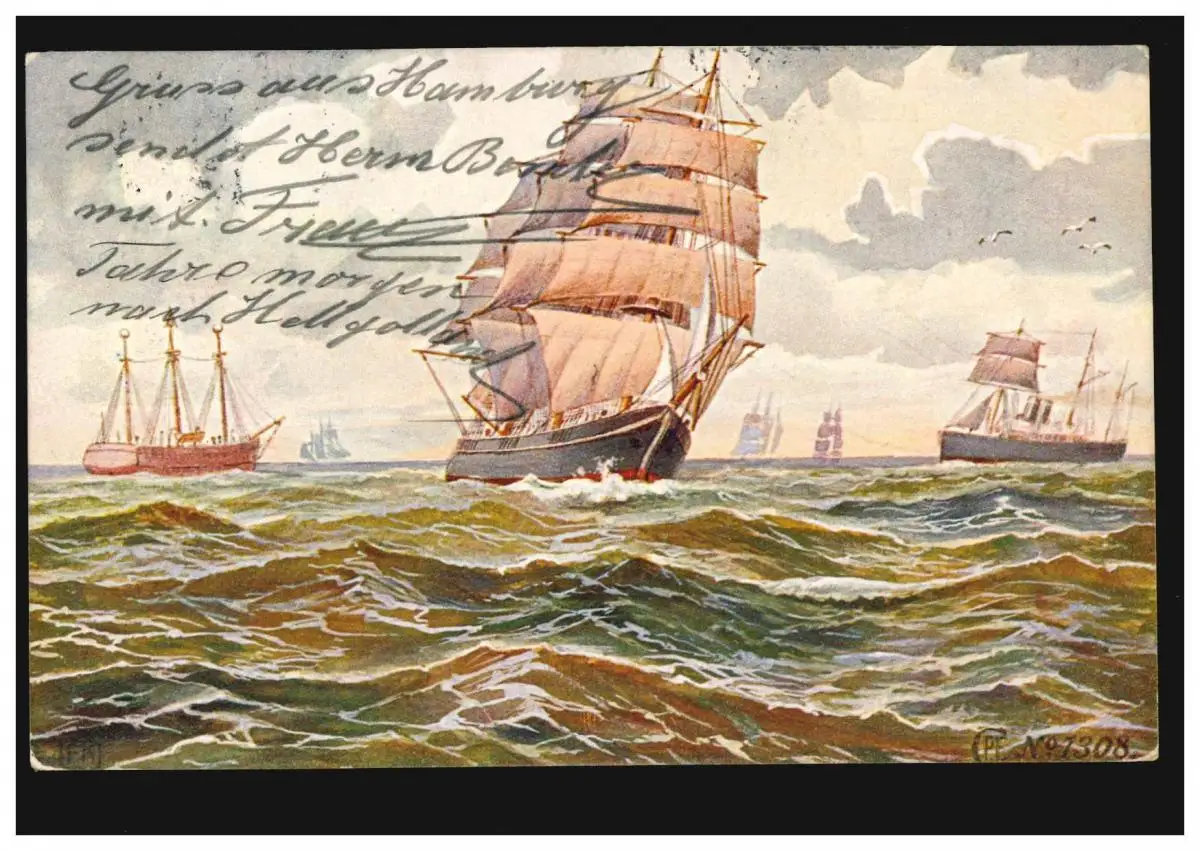 Voiliers AK artistes en haute mer, HAMBURG 15.5.193 vers RHEINECK 16.5.03