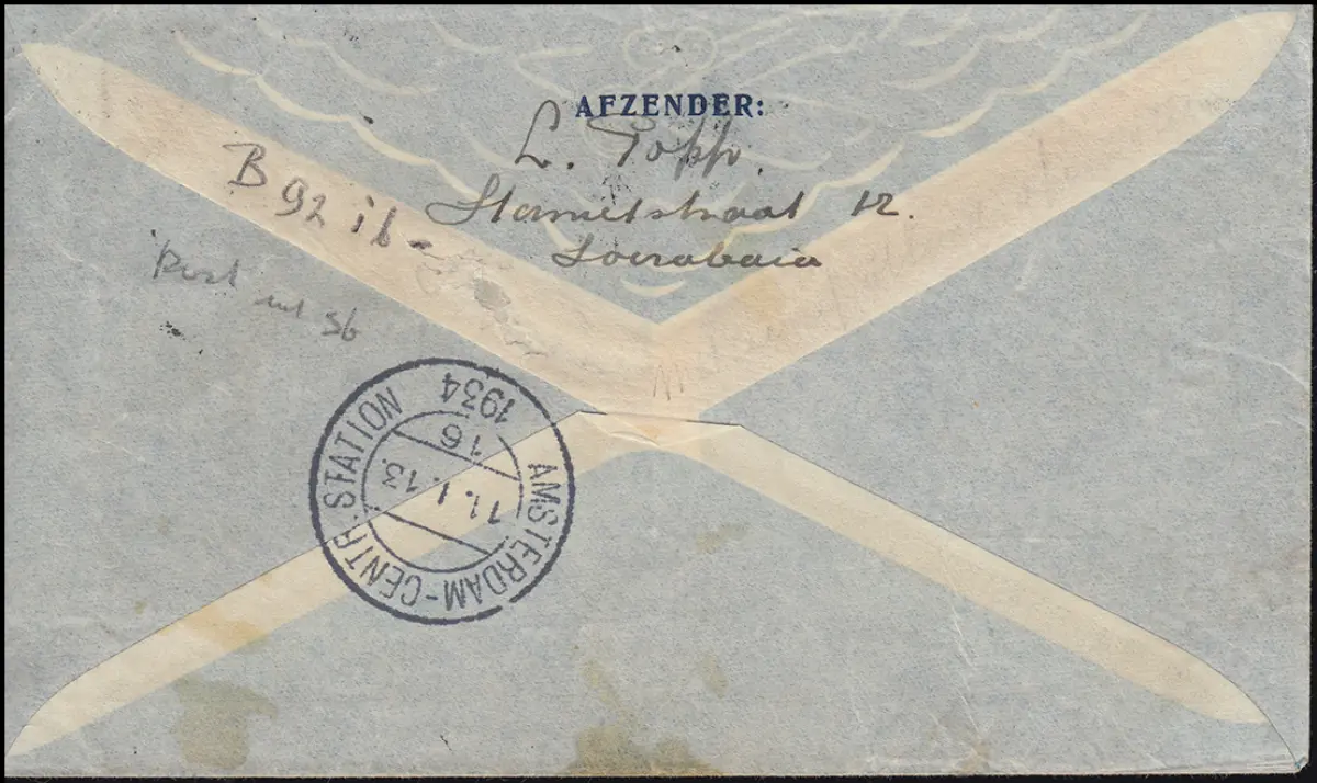 Vol de retour KLM Batavia 4.1.34 vers Amsterdam 11.1. à partir de Soerabaja 3.1.