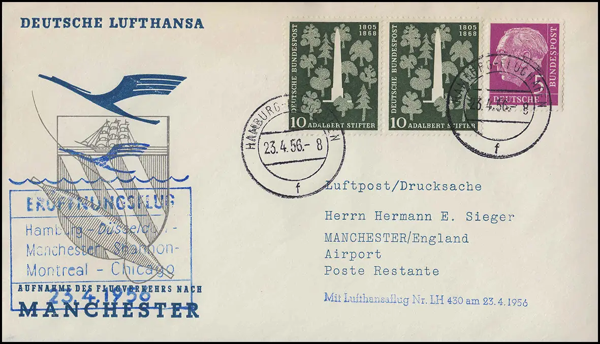 Vol d'ouverture LH 430 Hambourg/ Düsseldorf/ Manchester/ Montréal/Chicago 23.4.56