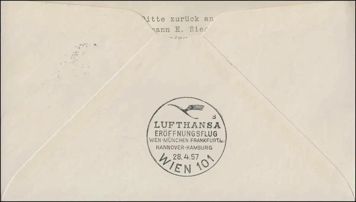 Vol d'ouverture Lufthansa Airpost Munich 28.4.1957 / Vienne 101 28 avril 57