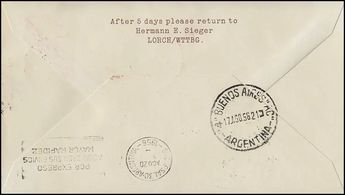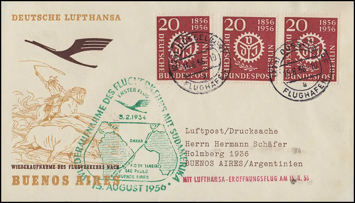 Vol d'ouverture Lufthansa Buenos Aires Düsseldorf 15.8.1956/ Buenos Aire 17.8.56