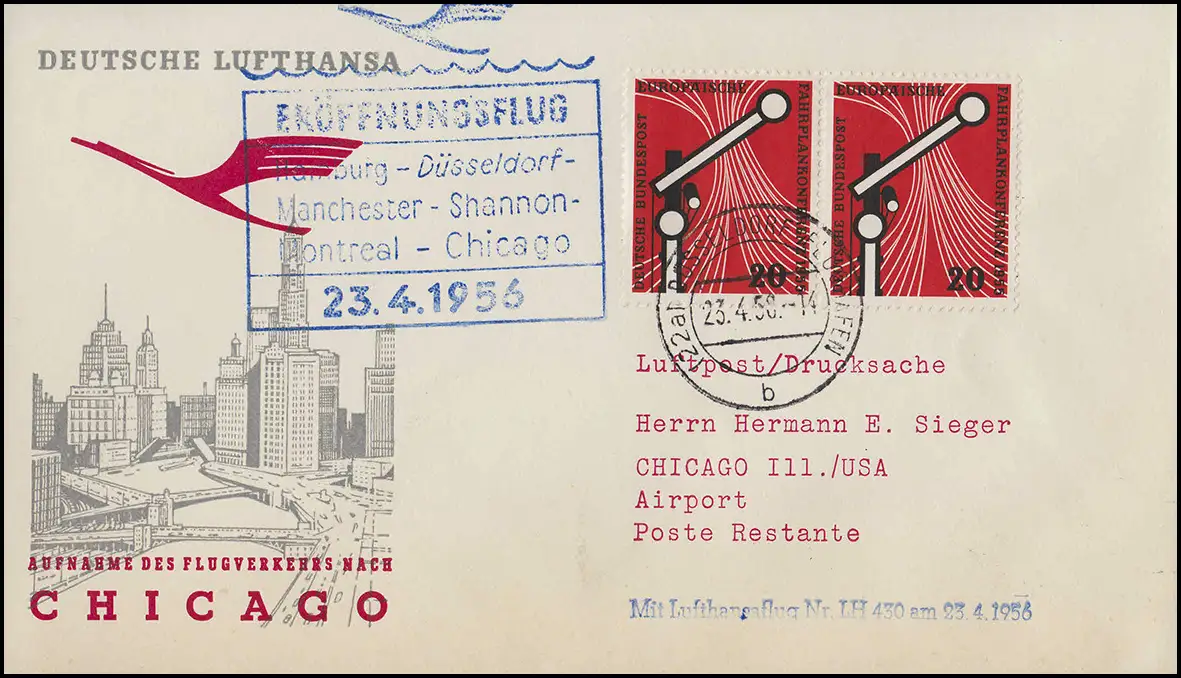 Vol d'ouverture Lufthansa LH 430 Chicago, Düsseldorf 23.4.1956 / Chicago 24.5.56