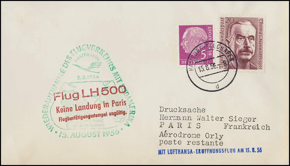 Vol d'ouverture Lufthansa LH 500 Hambourg - Paris le 15.8.1956, aucun atterrissage