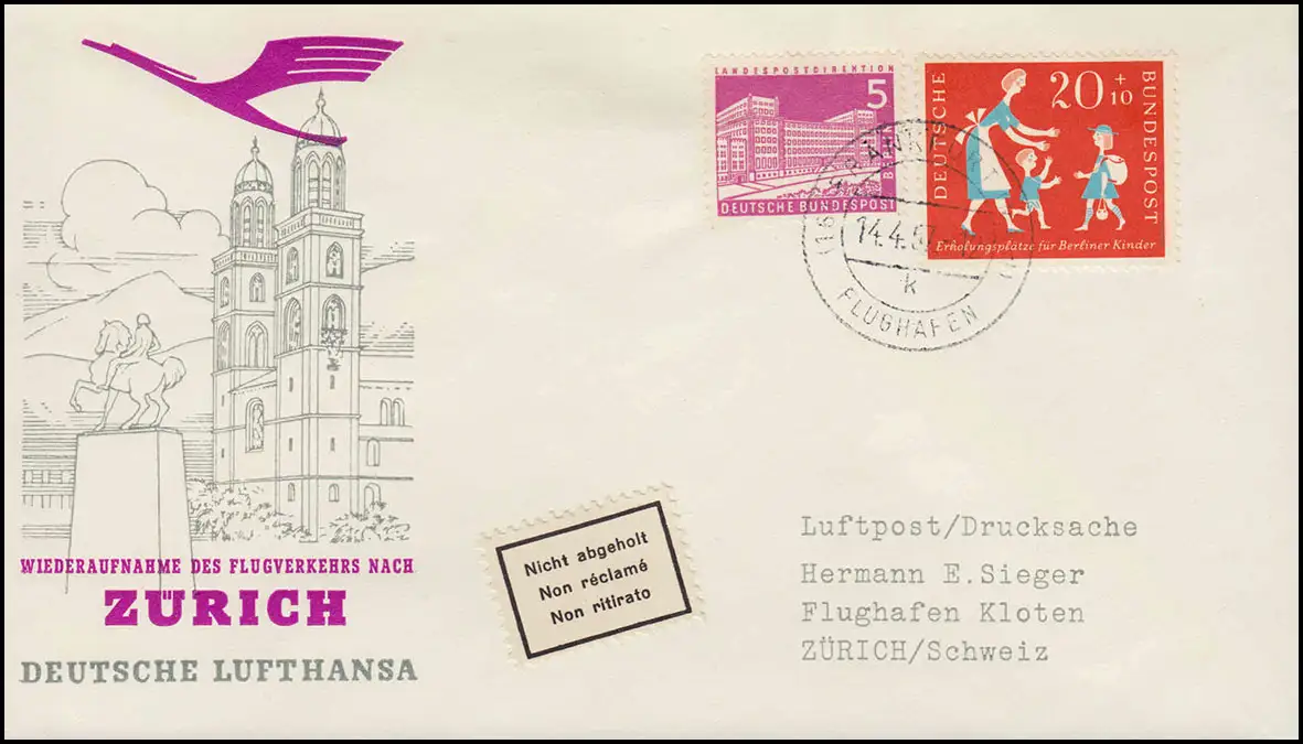 Vol d'ouverture Lufthansa reprise du trafic aérien FRANKFURT/ZÜRICH 14.4.57