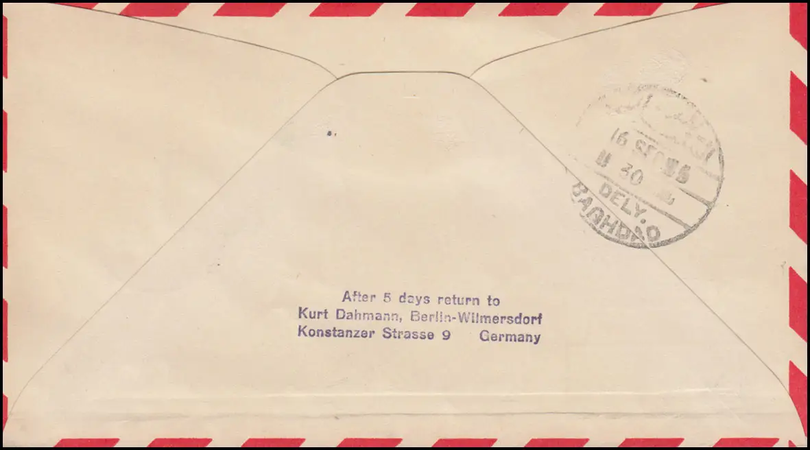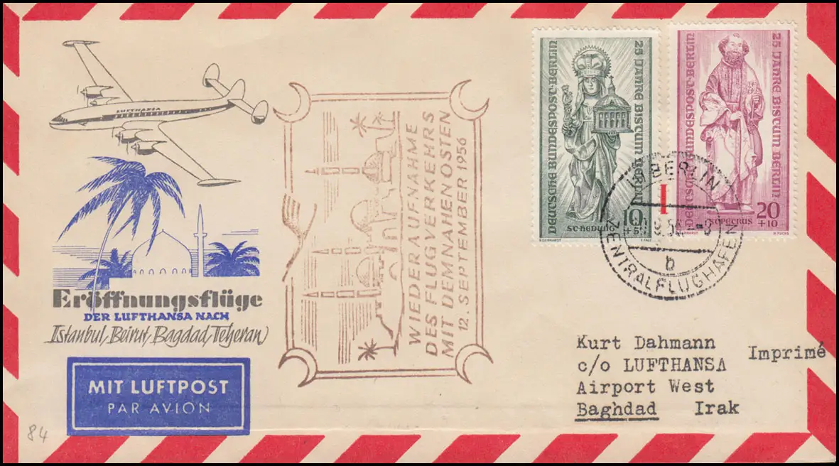 Vol d'ouverture de Lufthansa vers Bagdad 12.9.1956 Lettre BERLIN 10.9.56
