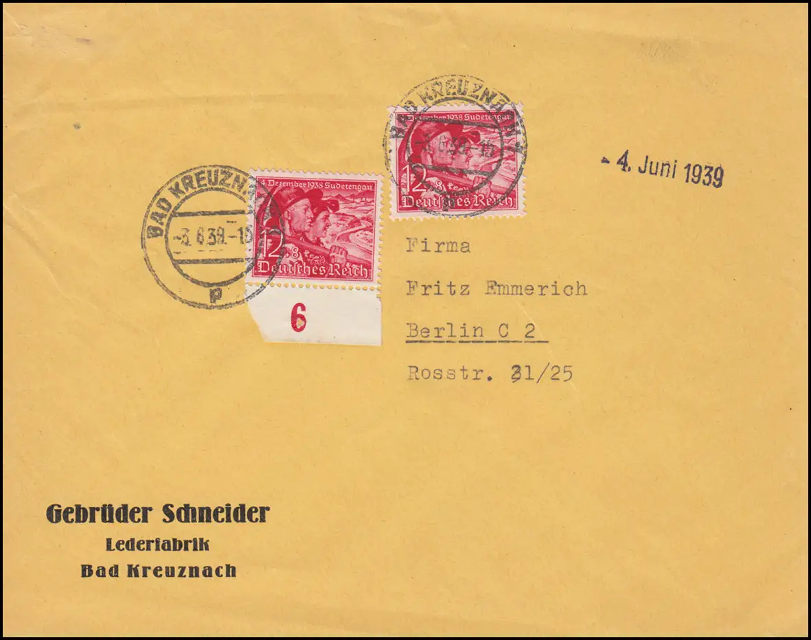référendum au Sud-Est de MeF sur lettre BAD KREUZNACH 3.6.1939 à Berlin