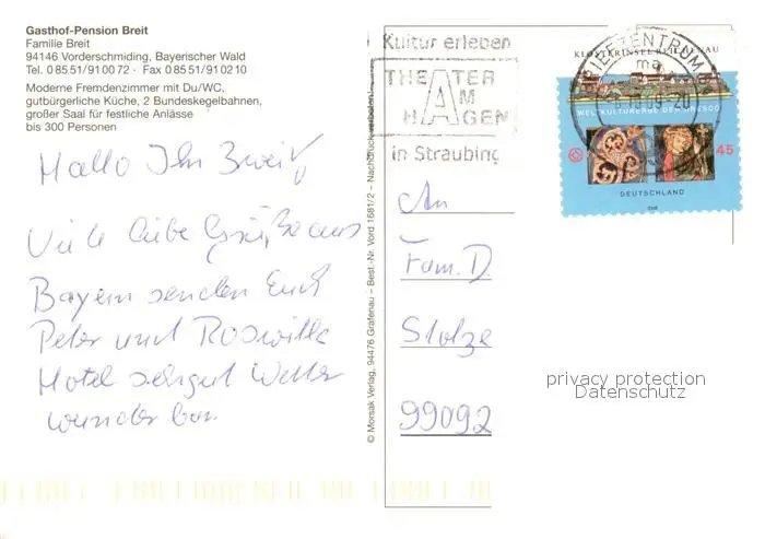 Vorderschmiding Gasthof Pension Breit Festsaal Vorderschmiding postalisch gelaufen 2009 Erhaltung siehe scans [FriedD77] Frierer