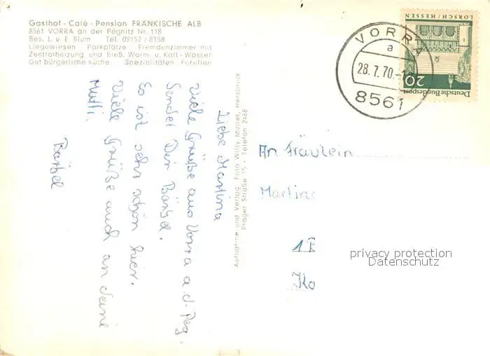 Vorra_Pegnitz Gasthof Fraenkische Alb Gastraeume Panorama Vorra Pegnitz postalisch gelaufen 1970 Erhaltung siehe scans [WerneD78] WernPID7
