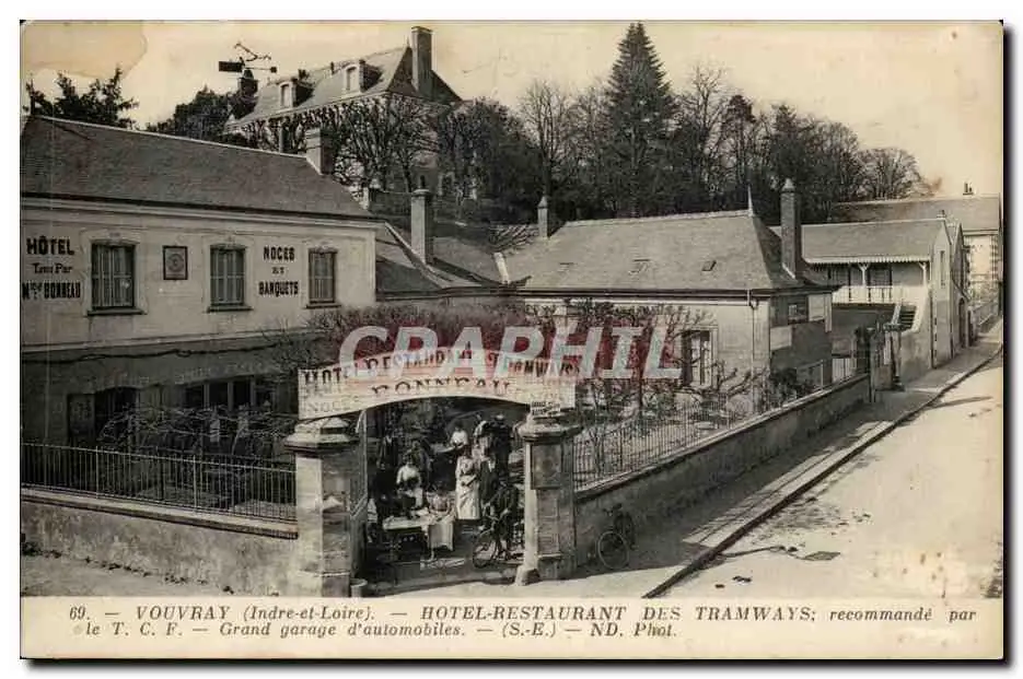 Vouvray - Hotel Restaurant des Tramways - recommande par le grand garage des automobiles - Cartes postales