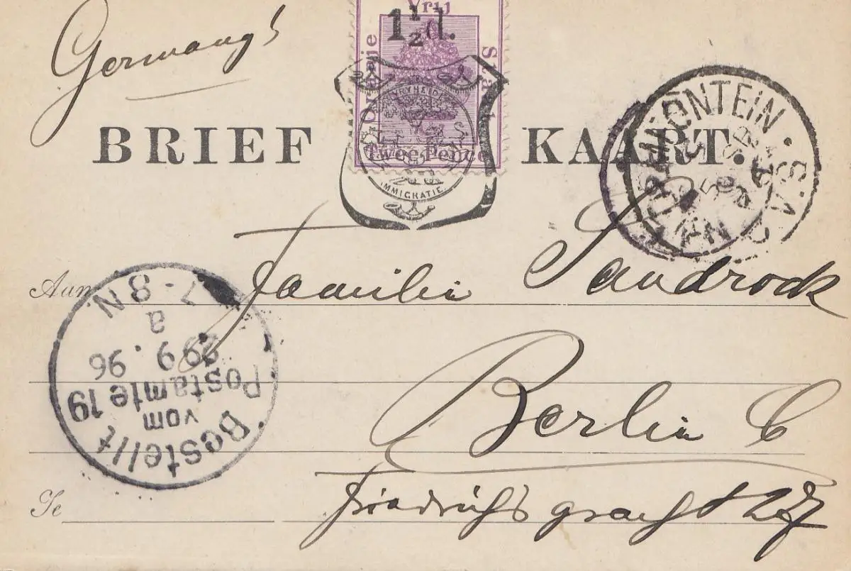 Vrij: Lettre Kaart 1896 to Berlin