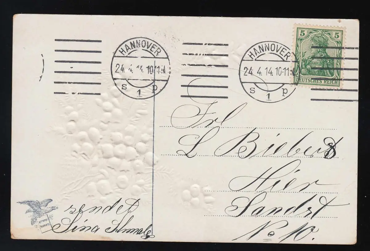 Vue de la vallée en montagne, fleurs rouges, anniversaire de Hannover 24.4.1914