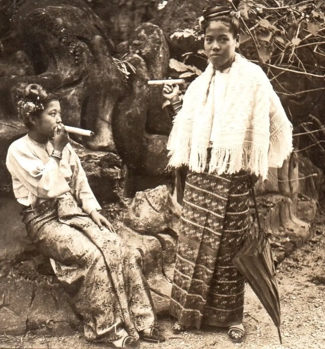 Taking their afternoon smoke-Burmese girls with their huge Cheroots