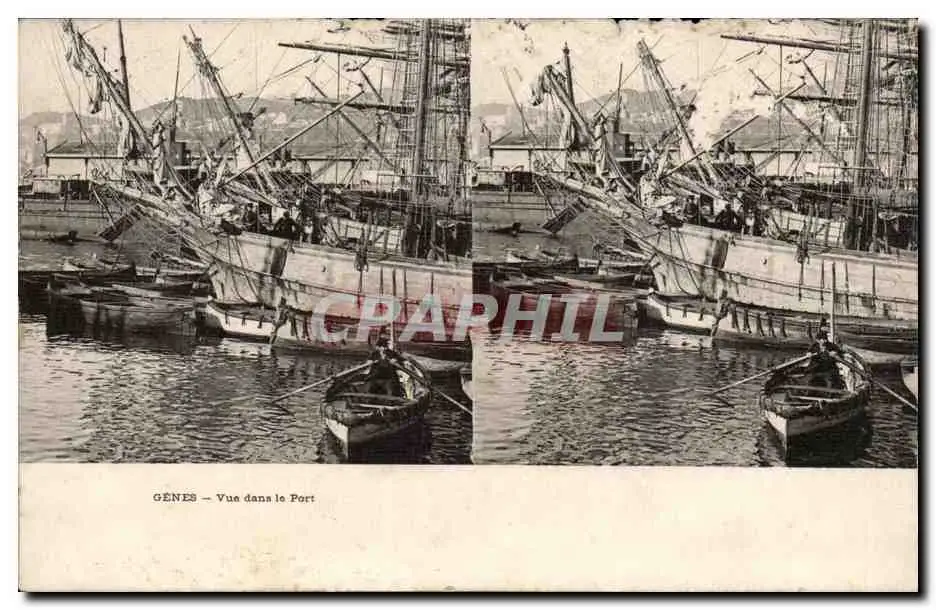 Vues stereoscopiques Italie Italia Genes Cartes postales Vue dans le port