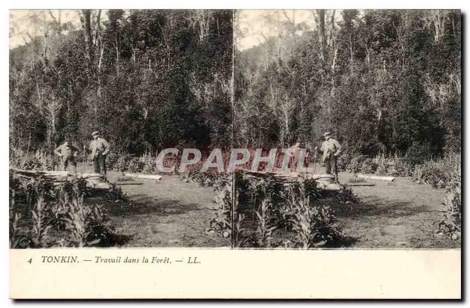 Vues stereoscopiques Tonkin Cartes postales Travail dans la foret (hevea) Indochine Vietnam