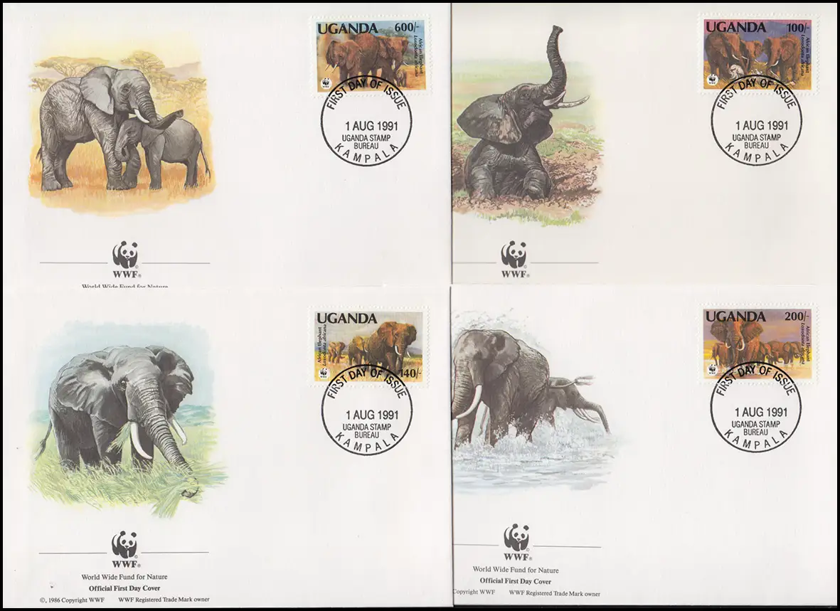 WWF Elefants 1991 Ouganda 960-963 phrases **, sur FDC et comme cartes maximales