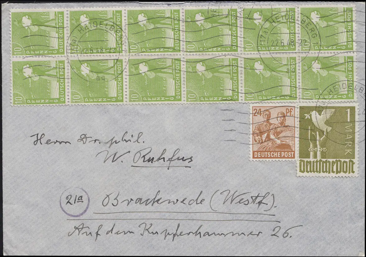 Réforme monétaire - Dix-deuxième édition 946+951+959 Bf. HEIDELBERG 22.6.48 n. Brackwede