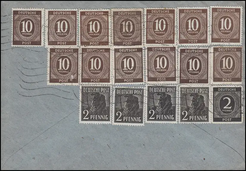 Enveloppe de 10 compartiments en section I+II avant et arrière sur lettre d'Ulm au bureau principal de Bonn selon la figure.