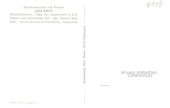 Wald-Erlenbach Restaurant Pension Zur Rose im Odenwald Wald-Erlenbach postalisch nicht gelaufen ca. 1965 Erhaltung siehe scans [FriedD77] Frierer
