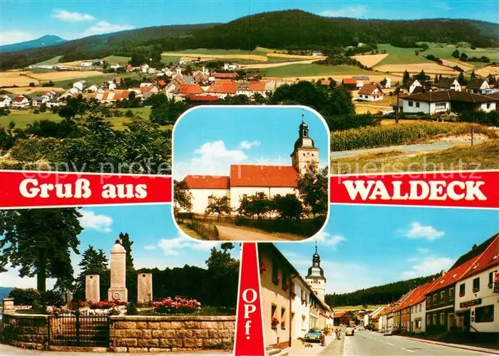 Waldeck_Oberpfalz Panorama Ortsmotiv mit Kirche Hauptstrasse Grabmal Gedenkstaette Waldeck Oberpfalz postalisch nicht gelaufen nach 1965 Erhaltung siehe scans [FriedD77] Frierer