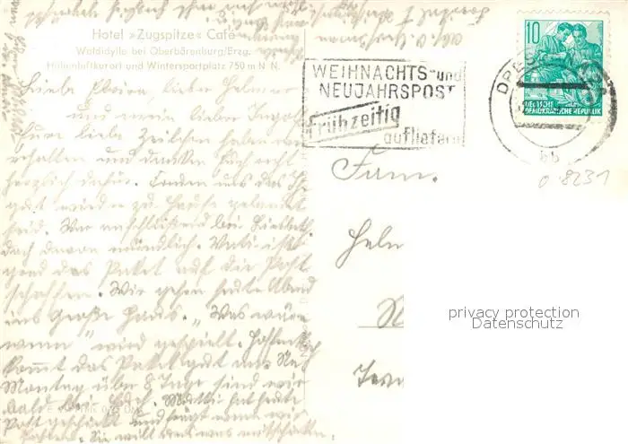 Waldidylle Hotel Cafe Zugspitze Waldidylle postalisch gelaufen 1959 Erhaltung siehe scans [FriedD77] Frierer