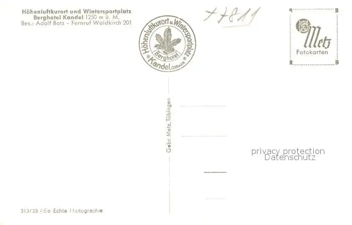 Waldkirch_Breisgau Berghotel Kandel Waldkirch Breisgau postalisch nicht gelaufen 1921-1965 Erhaltung siehe scans [WerneD78] WernPID7