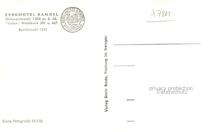 Waldkirch_Breisgau Panorama Berghotel Kandel Waldkirch Breisgau postalisch nicht gelaufen 1921-1965 Erhaltung siehe scans [WerneD78] WernPID7