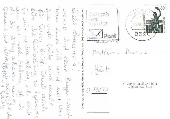Waldkirchen Niederbayern Panorama Wegekreuz Waldkirchen postalisch gelaufen nach 1965 Erhaltung siehe scans [WerneD78] WernPID7