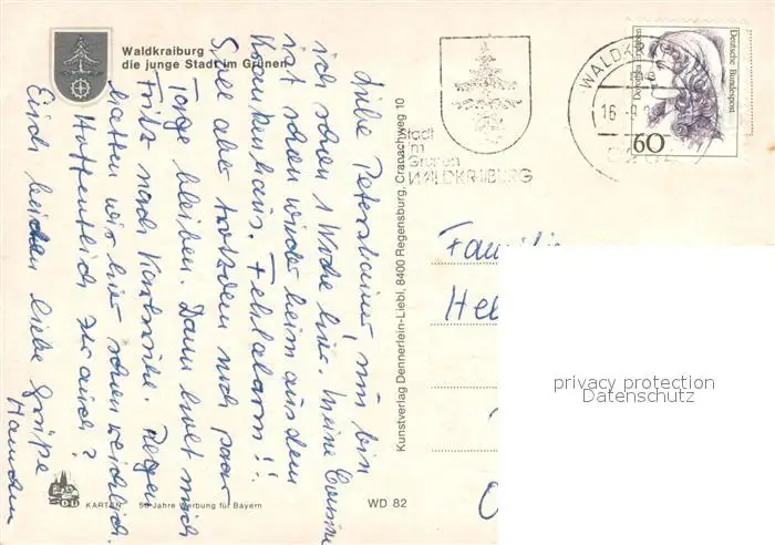 Waldkraiburg Stadtplatz Kirche Denkmal Waldbad Freibad Waldkraiburg postalisch gelaufen ca. 1990 Erhaltung siehe scans [FriedD77] Frierer