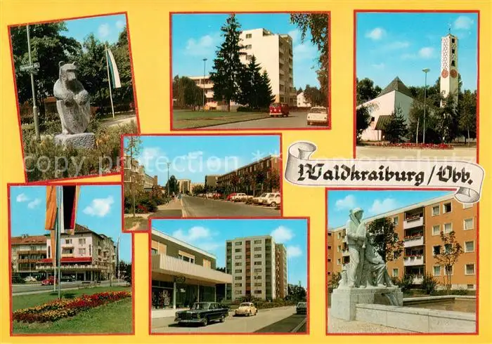 Waldkraiburg Wohnsiedlung Hochhaeuser Kirche Denkmal Waldkraiburg