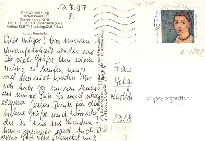 Wandlitz Bad Waldsiedlung Brandenburgklinik Entenskulptur Wandlitz postalisch gelaufen 1997 Erhaltung siehe scans [WerneD78] WernPID7