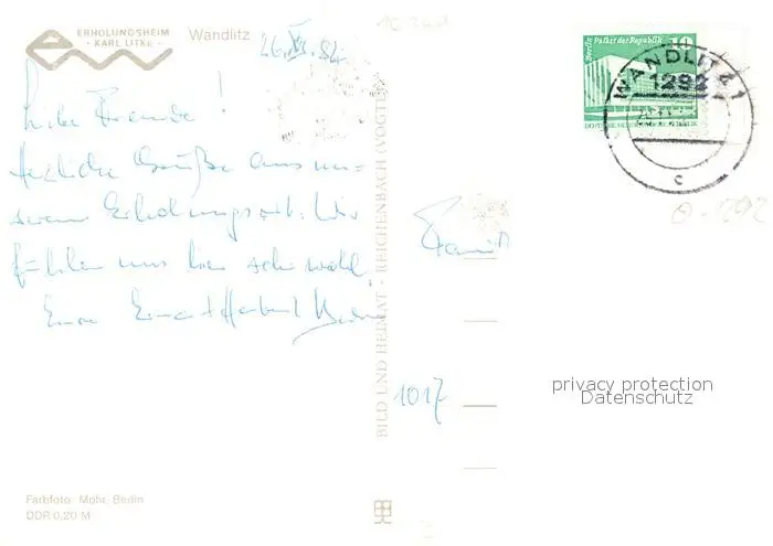 Wandlitz Erholungsheim Karl Litke Wandlitz postalisch gelaufen 1982 Erhaltung siehe scans [WerneD78] WernPID7