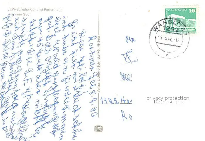 Wandlitz LED Schulungs Ferienheim Rahmer See Wandlitz postalisch gelaufen 1986 Erhaltung siehe scans [KathaD81] Kathoren