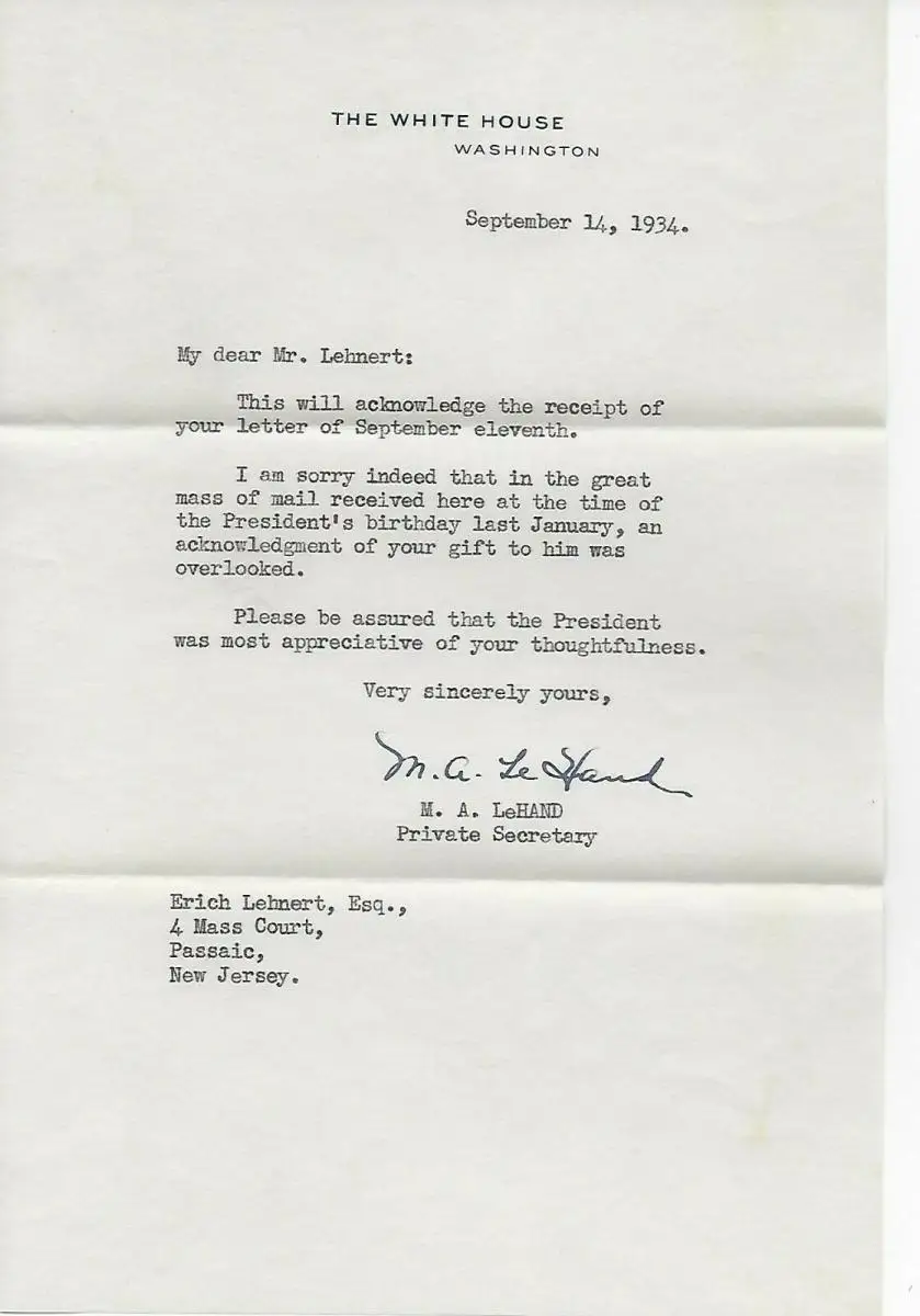 Washington: White House 1934 to Passaic/New Jersey, Private Secretary
