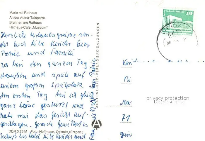 Weida_Thueringen Rathaus Marktplatz Auma Talsperre Cafe Weida Thueringen postalisch gelaufen nach 1965 Erhaltung siehe scans [KathaD81] Kathoren