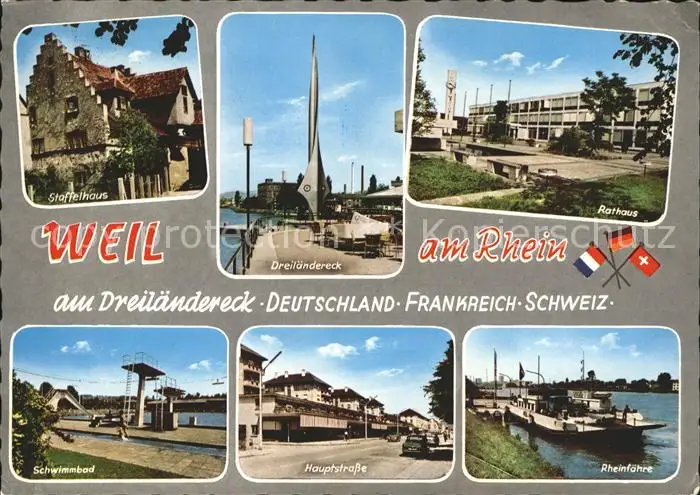 Weil am Rhein Staffelhaus Rathaus Hauptstrasse Schwimmbad Weil am Rhein postalisch nicht gelaufen 1966 Erhaltung siehe scans Alte Ansichtskarte Postkarte Paoletti