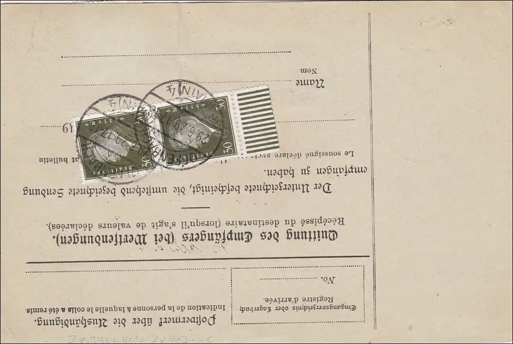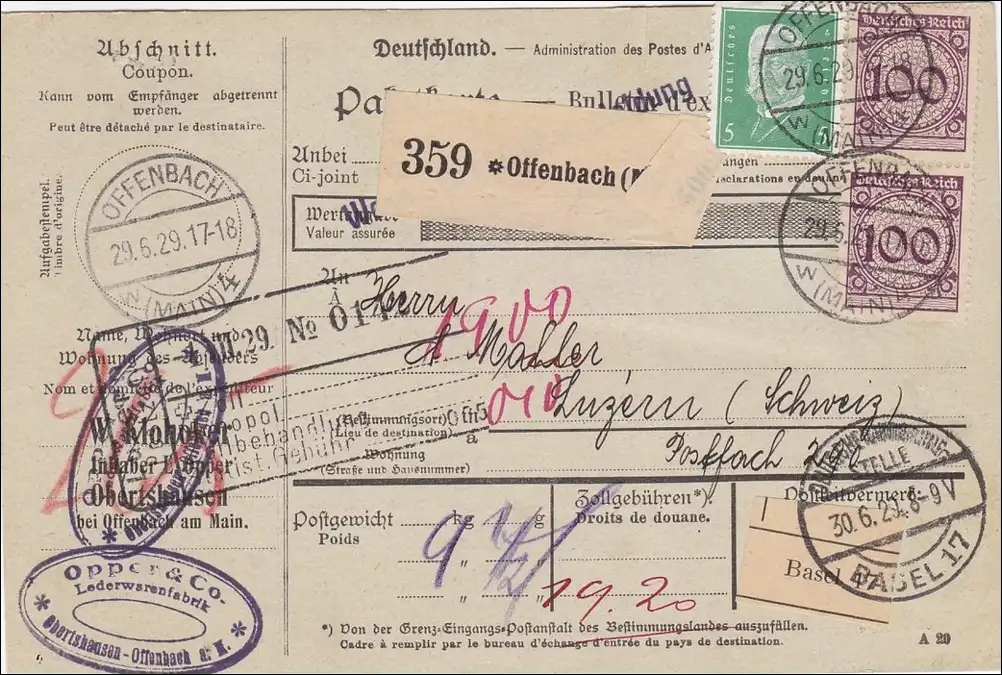 Weimar: Carte de forfait d'Offenbach en Suisse 1929