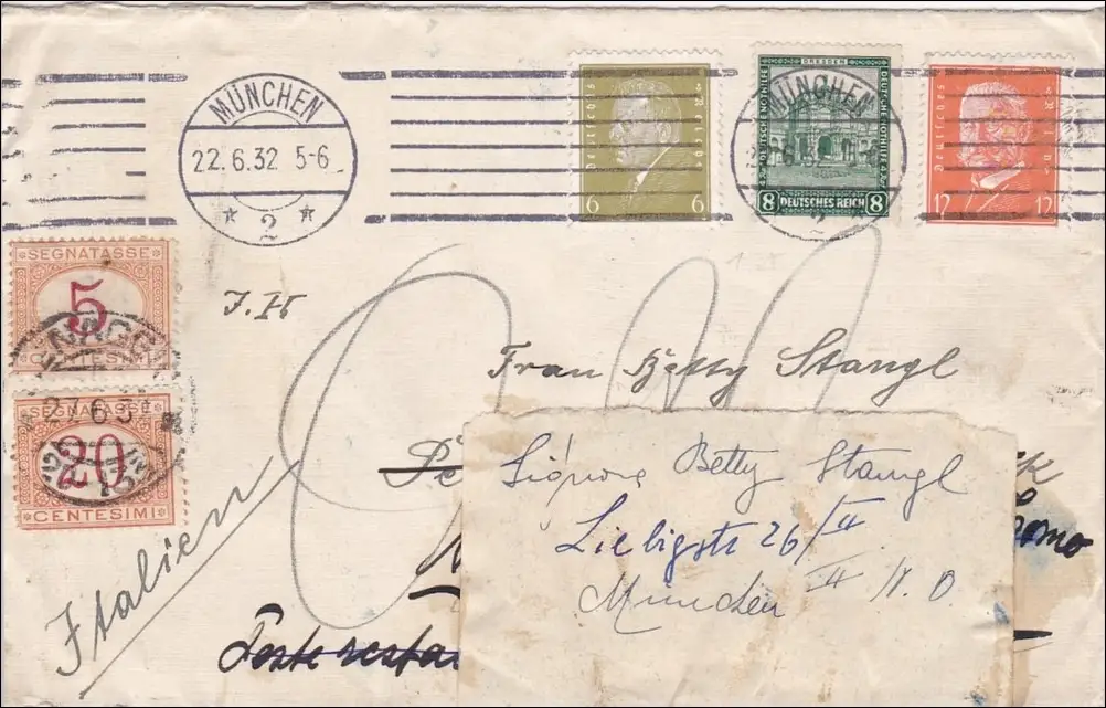 Weimar: Lettre de Munich à l'Italie avec supplément 1932