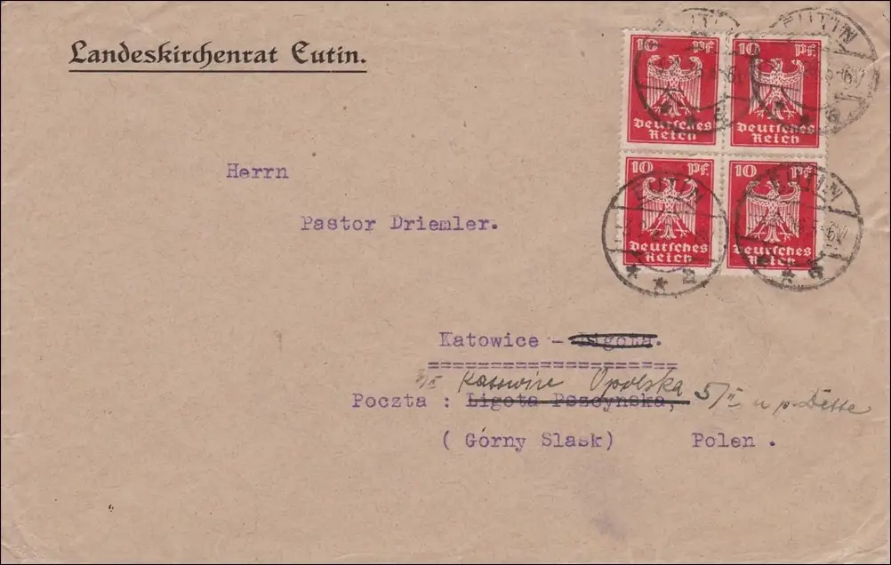Weimar: Lettre du Conseil Église de la campagne d'Eutin à Katowice en 1926