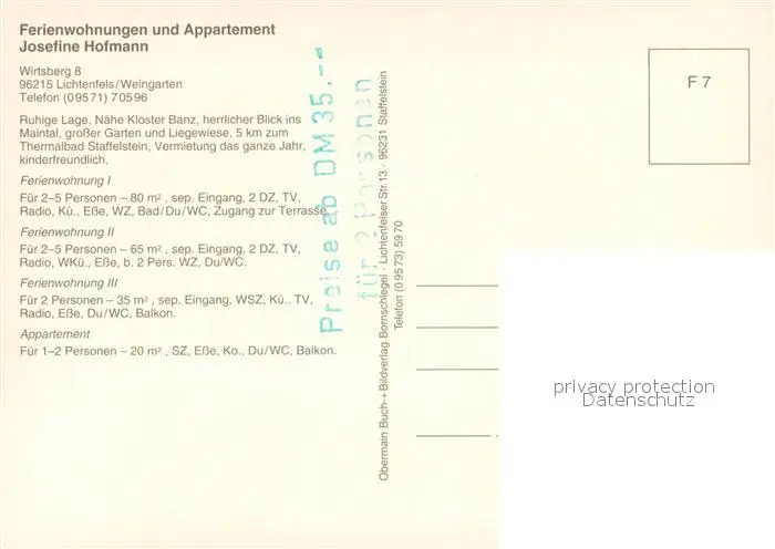 Weingarten_Oberfranken Ferienwohnungen Hofmann Appartements Staffelstein Obermain Therme Kloster Banz Maintal Vierzehnheiligen Staffelberg Fliegeraufnahme Weingarten Oberfranken postalisch nicht gelaufen nach 1965 Erhaltung siehe scans [FriedD77] Frierer