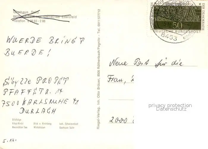 Weissenberg_Oberpfalz Vituskirchl Blick vom Kirchberg Freibad Neumuehler See Wirtsstuben Gasthaus Weissenberg Oberpfalz postalisch gelaufen 1981 Erhaltung siehe scans [FriedD77] Frierer