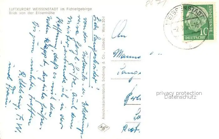 Weissenstadt Blick von der Elisenhoehe Weissenstadt postalisch gelaufen 1956 Erhaltung siehe scans [WerneD78] WernPID7