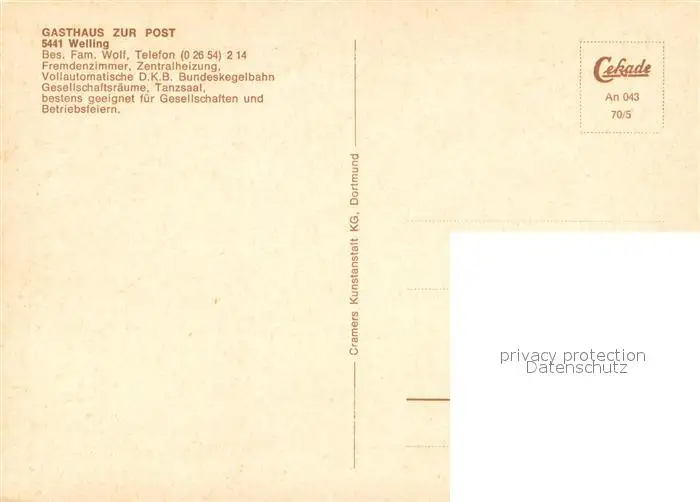 Welling_Mayen Gasthaus zur Post Gastraeume Kegelbahn Welling Mayen postalisch nicht gelaufen nach 1965 Erhaltung siehe scans [WerneD78] WernPID7
