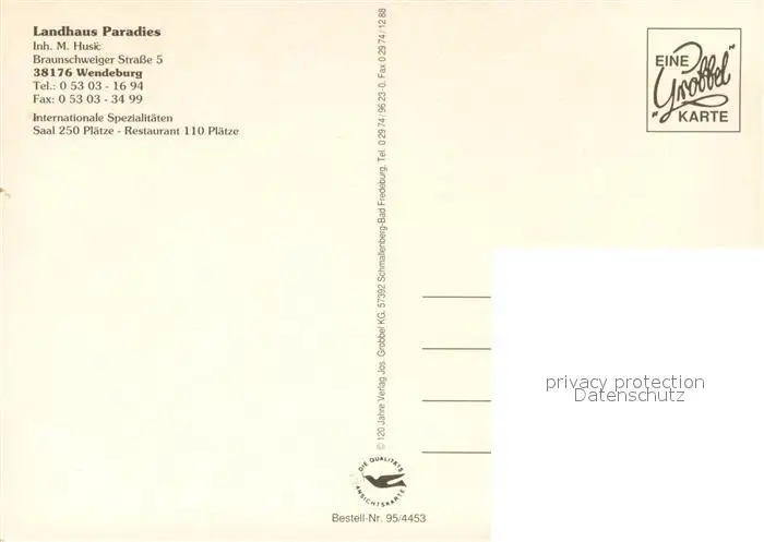 Wendeburg Landhaus Paradies Gastraeume Bar Speisesaal Wendeburg postalisch nicht gelaufen nach 1965 Erhaltung siehe scans [WerneD78] WernPID7
