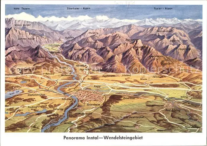 Wendelstein Berg Panoramakarte Wendelsteingebiet Bayrischzell postalisch nicht gelaufen nach 1965 Erhaltung siehe scans Alte Ansichtskarte Postkarte LiesID40