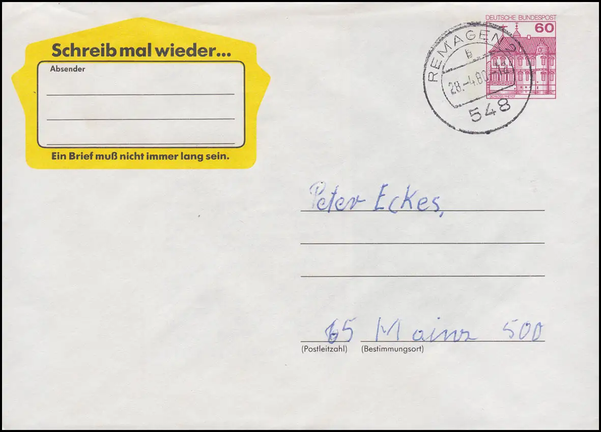 Enveloppe publicitaire WU 1, SWK 60 pf. avec texte publicitaire, utilisation réelle des besoins