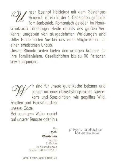Wesel_Nordheide Gaestehaus Heidelust Wesel Nordheide postalisch nicht gelaufen nach 1965 Werbekarte (keine Postkarte) Erhaltung siehe scans [KathaD81] Werbekarte (keine Postkarte) Kathoren
