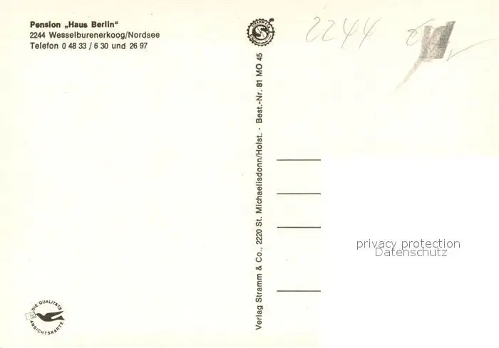 Wesselburenerkoog Pension Haus Berlin Wesselburenerkoog postalisch nicht gelaufen nach 1965 Erhaltung siehe scans [WerneD78] WernPID7